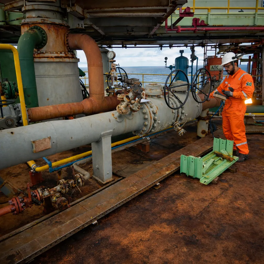 Embarque de Supervisor de Radioproteção com medidor de radiação específico para monitoração da unidade marítima com o objetivo de identificar pontos com possível incidência de NORM.